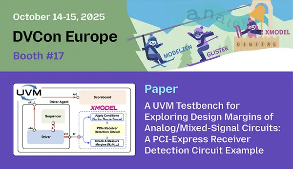 With XMODEL, modeling analog circuits in SystemVerilog is as easy and fun as skiing. GLISTER lets you carve top-down models, while MODELZEN takes you bottom-up. Then, race through simulation alongside digital models in a UVM testbench, and reach efficient, comprehensive verification of mixed-signal systems!